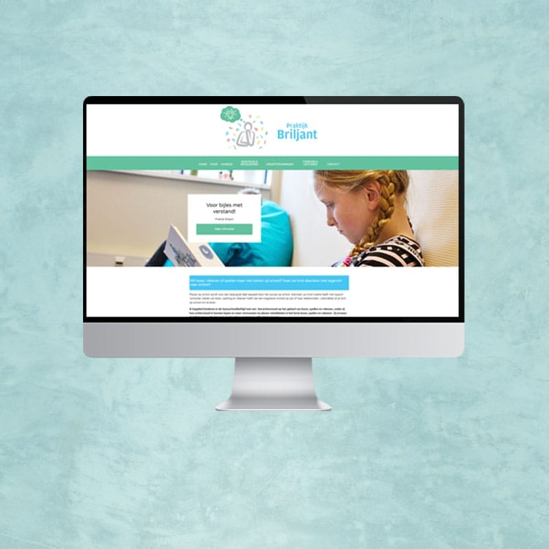 Een kleurrijke en vriendelijke website voor Praktijk Briljant ontwikkeld met WordPress Elementor.